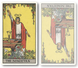 | 逆位置 | 不器用、消極的、自信がない、ごまかす、だます、詐欺、ペテン、能力不足、 準備不足、まだスタートラインに立てない、うまくいかない |