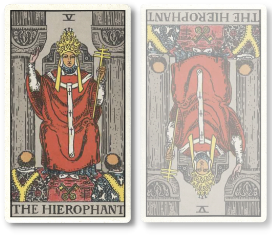 | 正位置 | 信頼、信用、冠婚葬祭、大きな組織、宗教、宗教施設、信仰心、祈り、寛容、優しさ、良い助言、尊敬、伝統、精神的な導き、保守主義 |