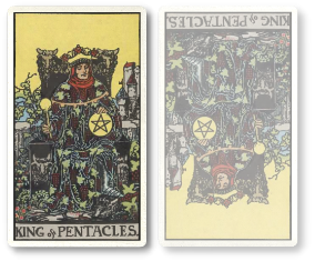 | 逆位置 | 拝金主義、物質主義、お金を追いかける、地位にこだわる、傲慢さ、高圧的、独裁的、頑固、見栄を張る、不器用、近視眼的、世の中お金がすべて |