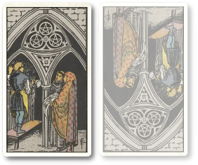 ペンタクルの3の正位置は、何かが発展するための第一関門を突破することを表します。実際に試験に合格する場合もあるでしょうし、発展のための機会が与えられる場合もあります。才能や実力が認められたり、昇進のチャンスがめぐってくるかもしれません。あるいは連絡先を交換できたり誰かとコンタクトを取れるようになるのかもしれません。